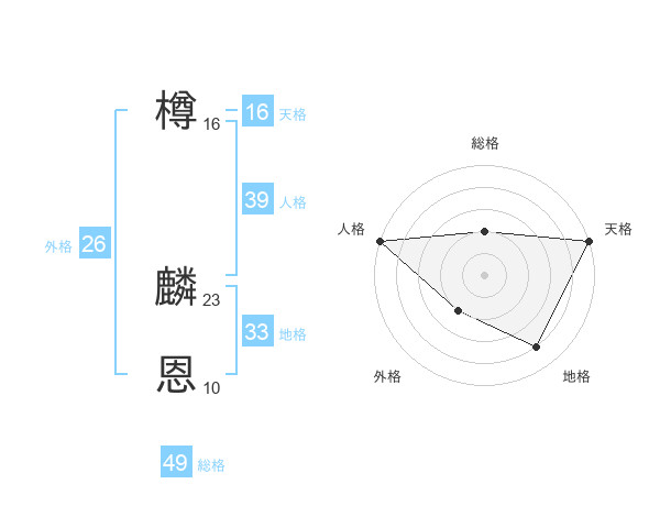樽 麟恩さんの総格は49画の2点!