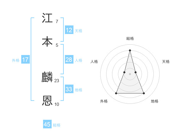 江本 麟恩さんの総格は45画の4点!