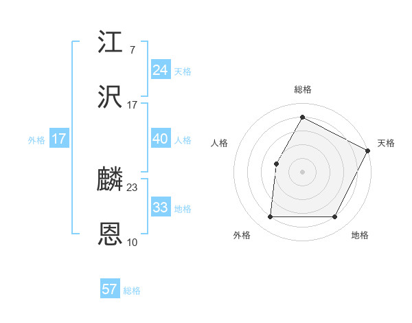 江沢 麟恩さんの総格は57画の4点!