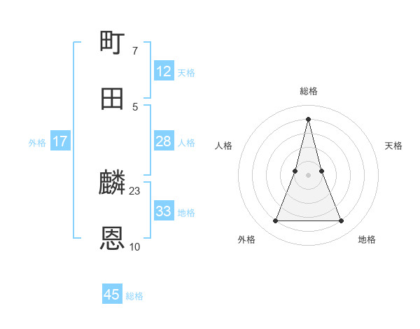 町田 麟恩さんの総格は45画の4点!