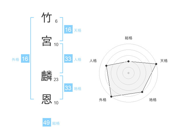 竹宮 麟恩さんの総格は49画の2点!