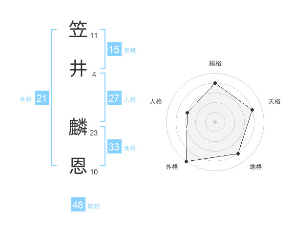 笠井 麟恩さんの総格は48画の4点!