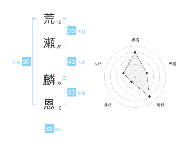 荒瀬 麟恩さんの総格は63画の4点!