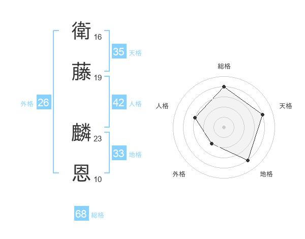 衛藤 麟恩さんの総格は68画の4点!