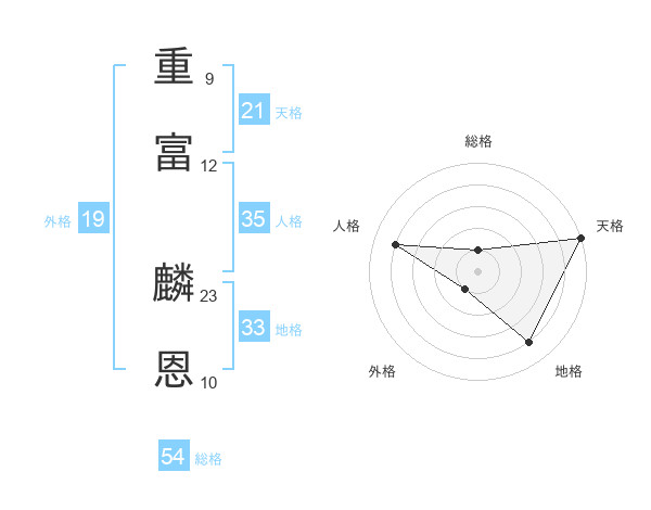 重富 麟恩さんの総格は54画の1点!