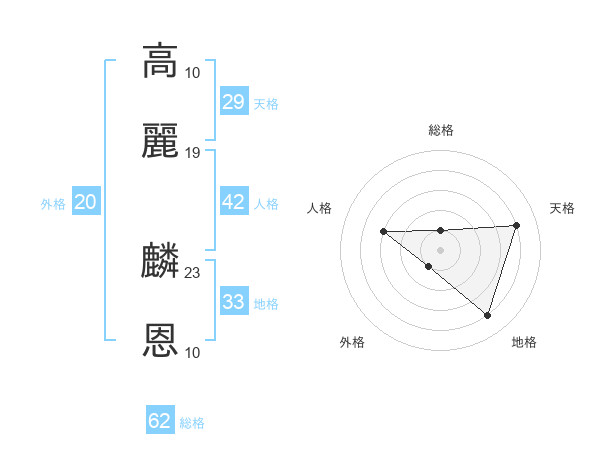 高麗 麟恩さんを姓名の画数から五運を鑑定