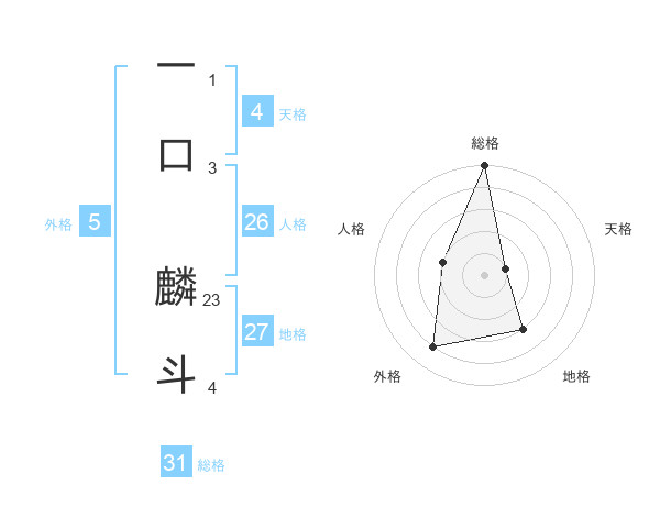 一口 麟斗さんを姓名の画数から五運を鑑定