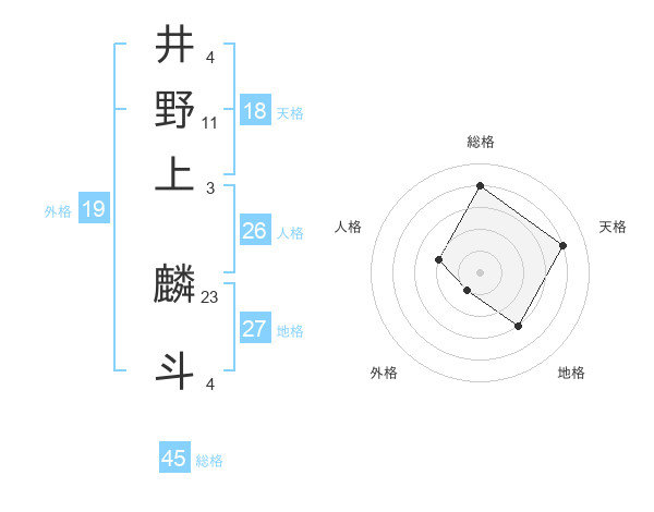 井野上 麟斗さんを姓名の画数から五運を鑑定