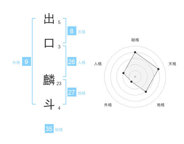 出口 麟斗さんを姓名の画数から五運を鑑定