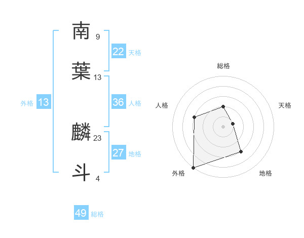 南葉 麟斗さんの総格は49画の2点!