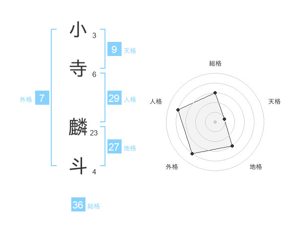 小寺 麟斗さんの総格は36画の3点!