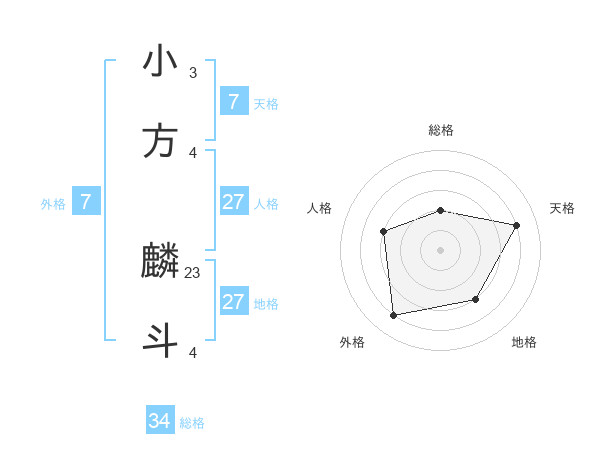 小方 麟斗さんの総格は34画の2点!