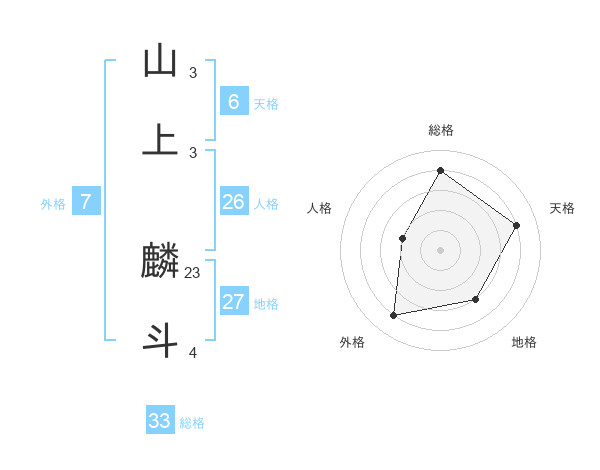 山上 麟斗さんの総格は33画の4点!