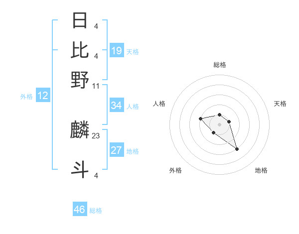 日比野 麟斗さんを姓名の画数から五運を鑑定