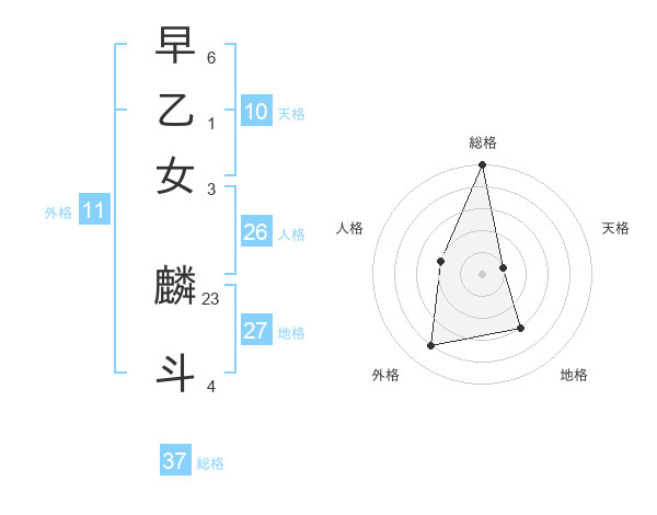 早乙女 麟斗さんの総格は37画の5点!