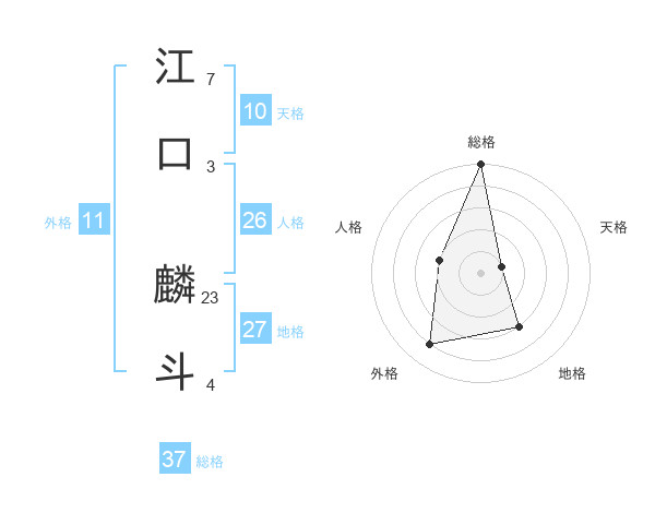 江口 麟斗さんを姓名の画数から五運を鑑定