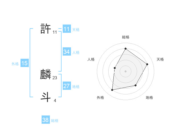 本サイトの鑑定結果の正当性は保証しません。鑑定結果は参考程度にお読みください。実際の名づけにご利用される場合は、姓名判断についてご自身でよくお調べください。
