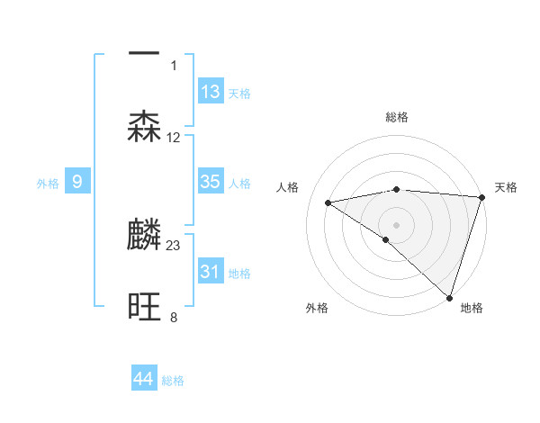 一森 麟旺さんの地格は31画の5点!