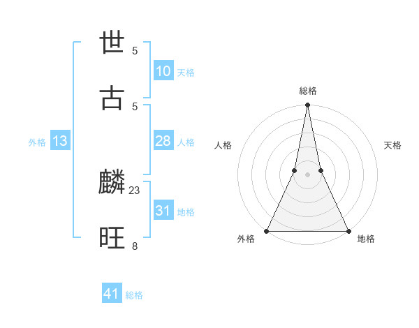 世古 麟旺さんの総格は41画の5点!