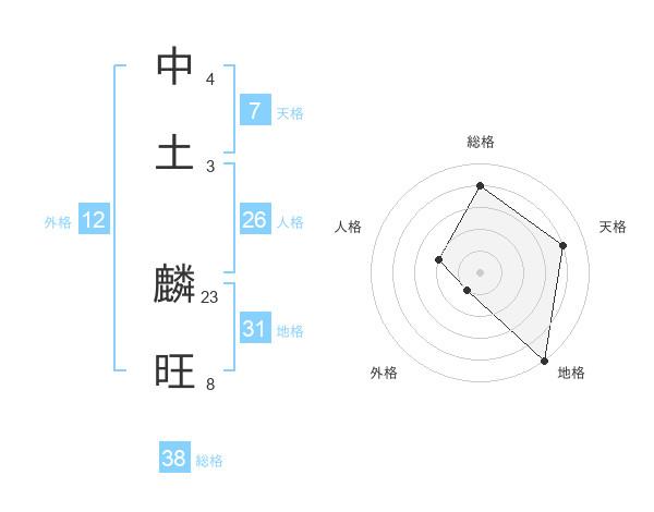 中土 麟旺さんの総格は38画の4点