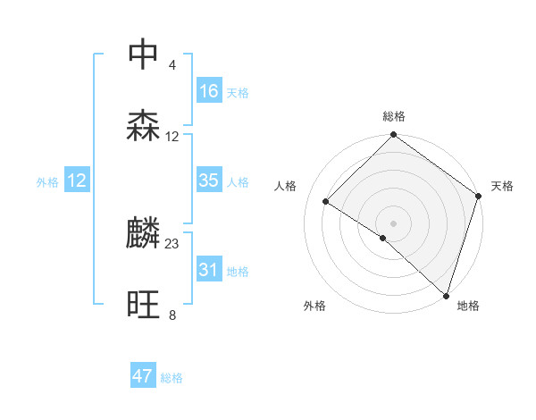 中森 麟旺さんを姓名の画数から五運を鑑定