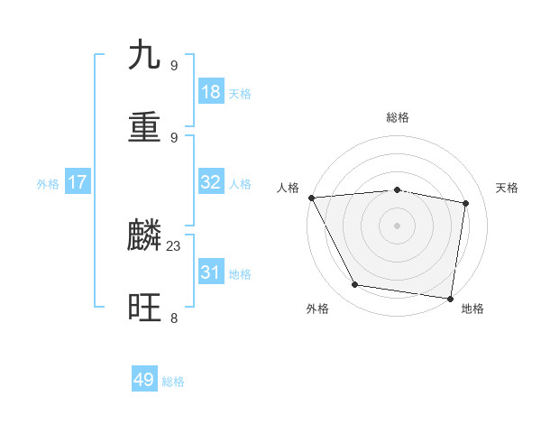 九重 麟旺さんの総格は49画の2点!