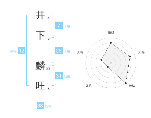 井下 麟旺さんの総格は38画の4点!