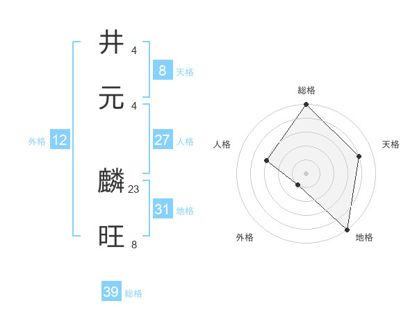 井元 麟旺さんを姓名の画数から五運を鑑定