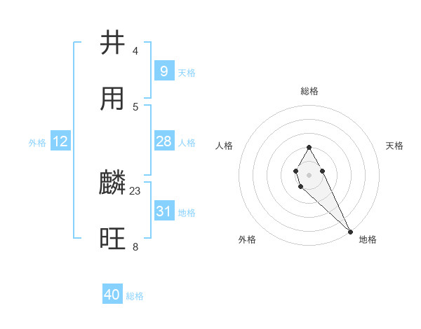 井用 麟旺さんを姓名の画数から五運を鑑定
