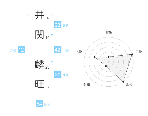 井関 麟旺さんの総格は54画の1点!