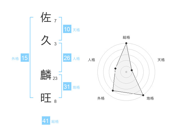 佐久 麟旺さんの総格は41画の5点!