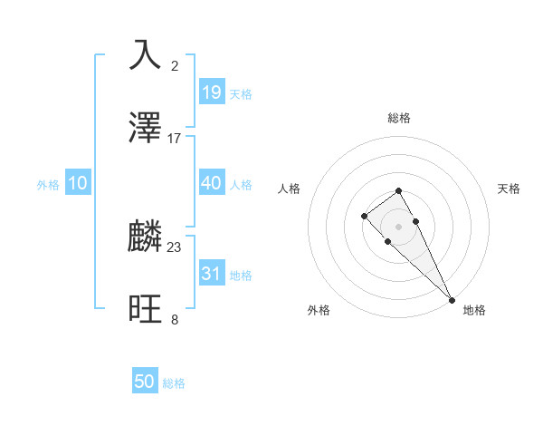 入澤 麟旺さんを姓名の画数から五運を鑑定
