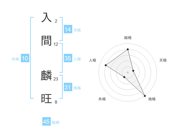 入間 麟旺さんの総格は45画の4点!