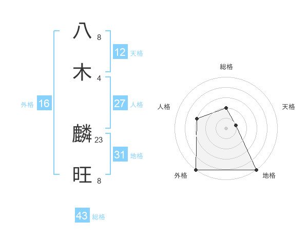 八木 麟旺さんの総格は43画の2点!