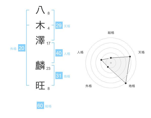 八木澤 麟旺さんを姓名の画数から五運を鑑定