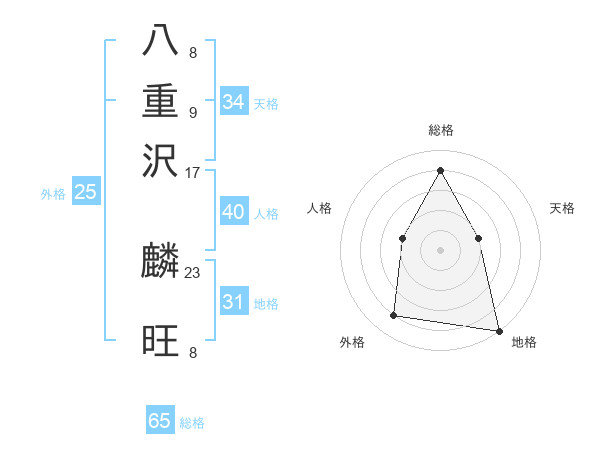 八重沢 麟旺さんを姓名の画数から五運を鑑定