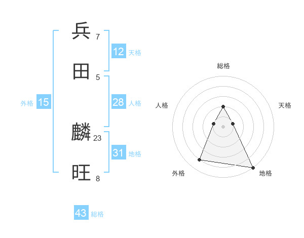 兵田 麟旺さんを姓名の画数から五運を鑑定