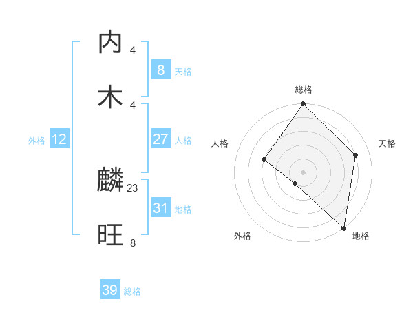 内木 麟旺さんの総格は39画の5点!