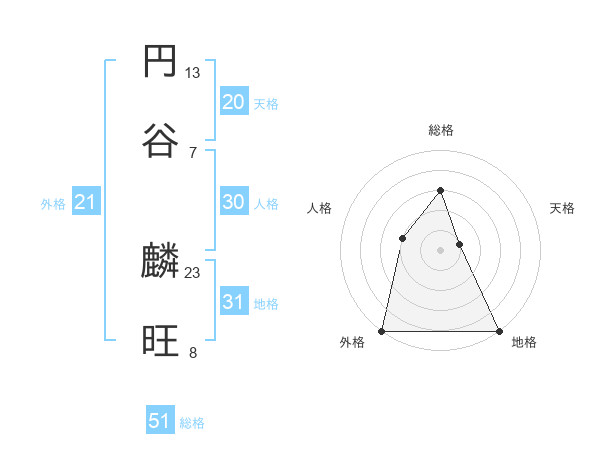 円谷 麟旺さんを姓名の画数から五運を鑑定