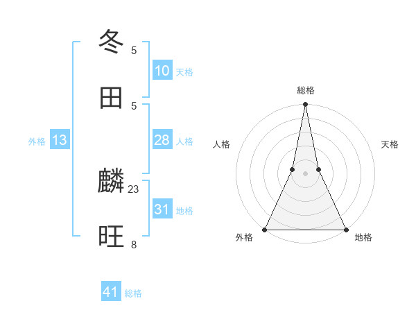 冬田 麟旺さんの総格は41画の5点!