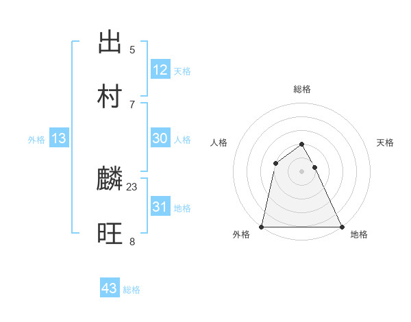 出村 麟旺さんを姓名の画数から五運を鑑定