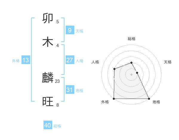卯木 麟旺さんの外格は13画の5点!