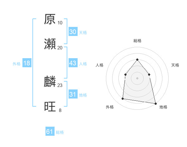 原瀬 麟旺さんを姓名の画数から五運を鑑定