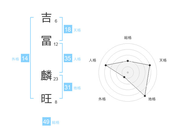 吉冨 麟旺さんを姓名の画数から五運を鑑定