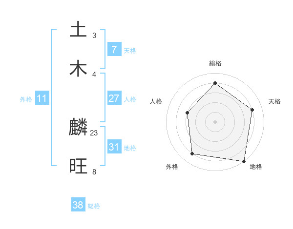 土木 麟旺さんを姓名の画数から五運を鑑定