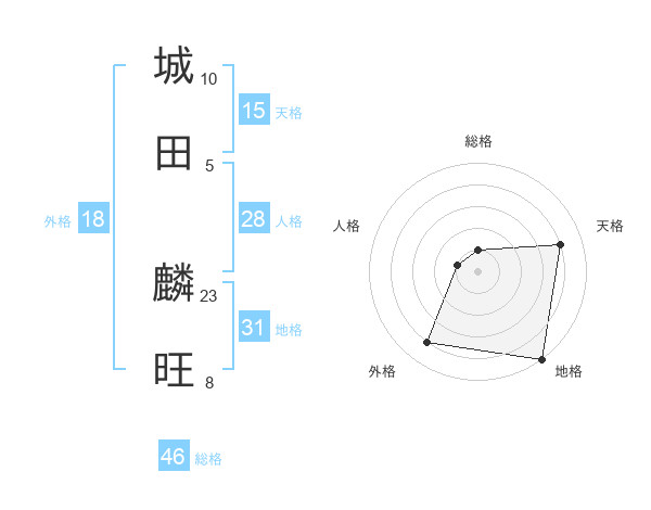 城田 麟旺さんを姓名の画数から五運を鑑定