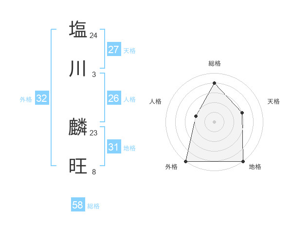 塩川 麟旺さんの総格は58画の4点!