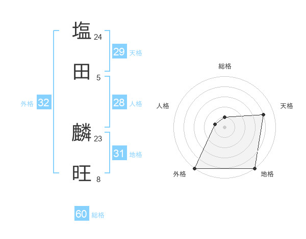 塩田 麟旺さんを姓名の画数から五運を鑑定