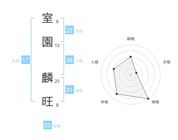 室園 麟旺さんの総格は53画の3点!