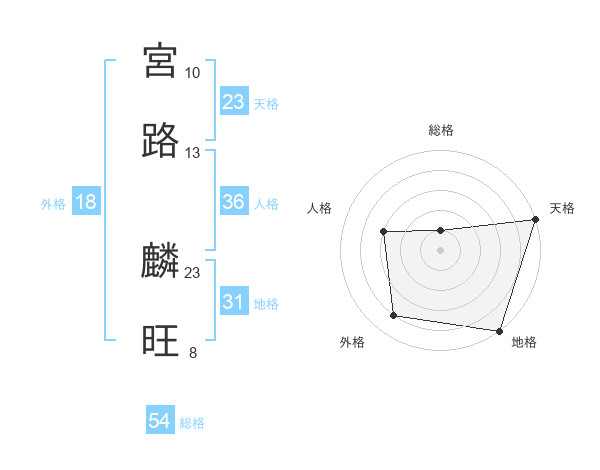 宮路 麟旺さんの総格は54画の1点!